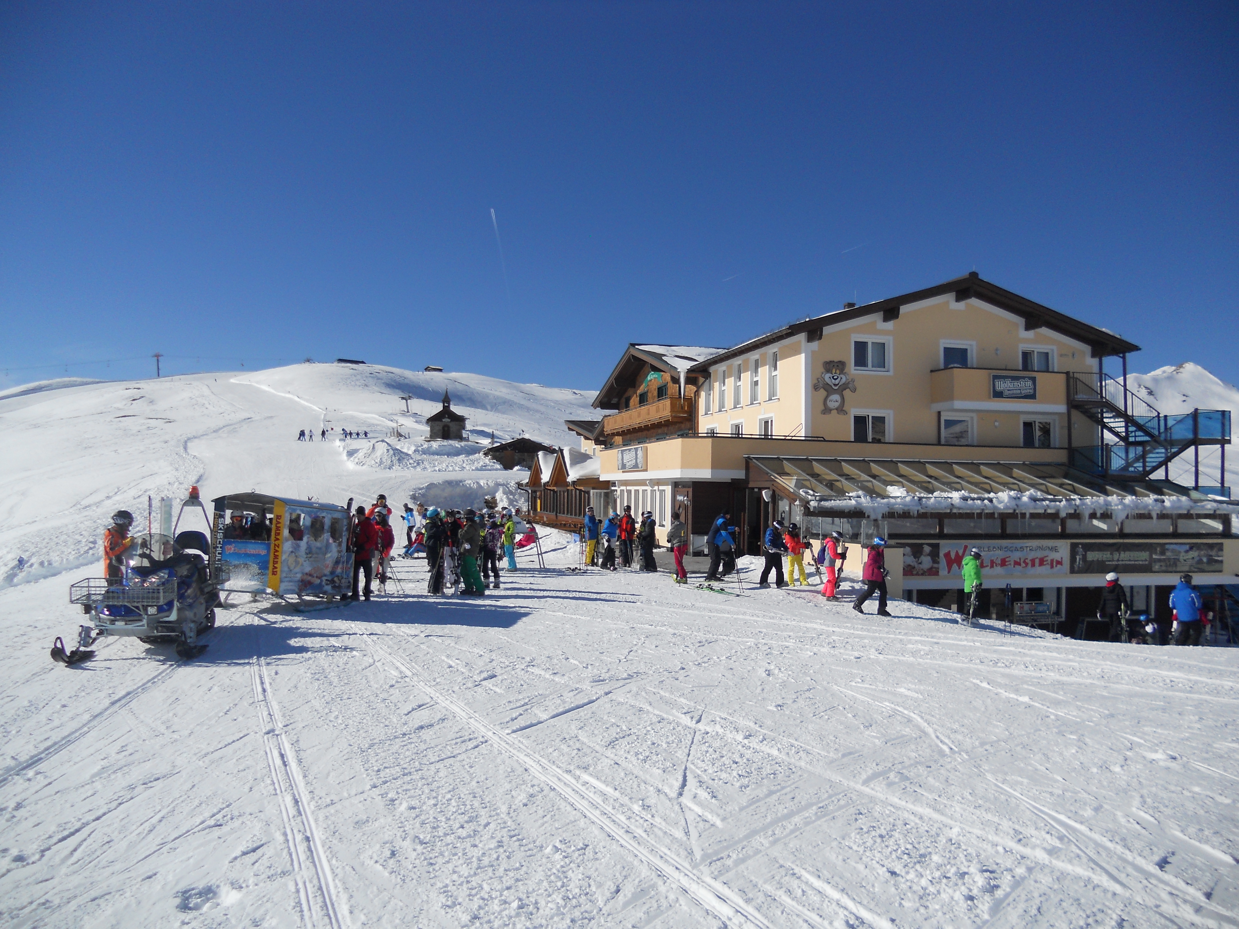 Um 12.30 Uhr haben wir wie jeden Tag auf der Wolkensteiner Alpenhütte Mittagspause gemacht und Brot und Suppe gegessen. Anschließend quatschten wir und spielten dann im Schnee. Einige ruhten sich auch vom anstrengenden und aufregenden Skifahren aus. Danach wurden wir in neue Gruppen eingeteilt und fuhren weiter Ski, was uns allen sehr viel Spaß macht.