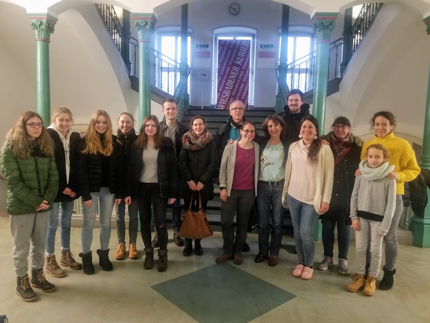 Am Donnerstag, den 5.11., wurde erstmals das das Stück „Die Weiße Rose – lebt“ vom Staatstheater Wiesbaden an unserer Schule vor einem gemischten Religionskurs der 8.Klasse aufgeführt. Bei uns waren Yasmin Malina und Paul Schön als Darsteller, Laura zur Nieden, die Theaterpädagogin, und die Inszenatorin des Stückes, Sophie Pompe. Das Ganze fand natürlich unter strengen Hygiene-Maßnahmen statt und wurde von Frau Rosenbaum und Herrn Dr. Buchwaldt begleitet.