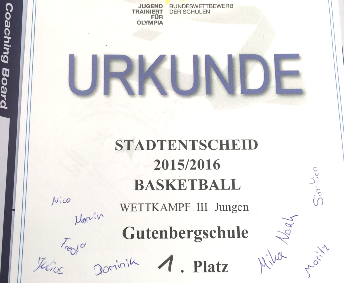 Mit dem Sieg in der jüngsten Wettkampfklasse IV (Jahrgang 2003-2005) haben die Basketball-Jungen der GBS nun alle drei Stadtentscheide für sich entschieden. Das 43-11 gegen den stärksten Gegner Oranienschule verdeutlicht die Überlegenheit des Teams, in dem 8 von 9 Spielern erstmals für die Schulmannschaft starteten. Der Regionalentscheid findet am 10. Februar in Hofheim statt.