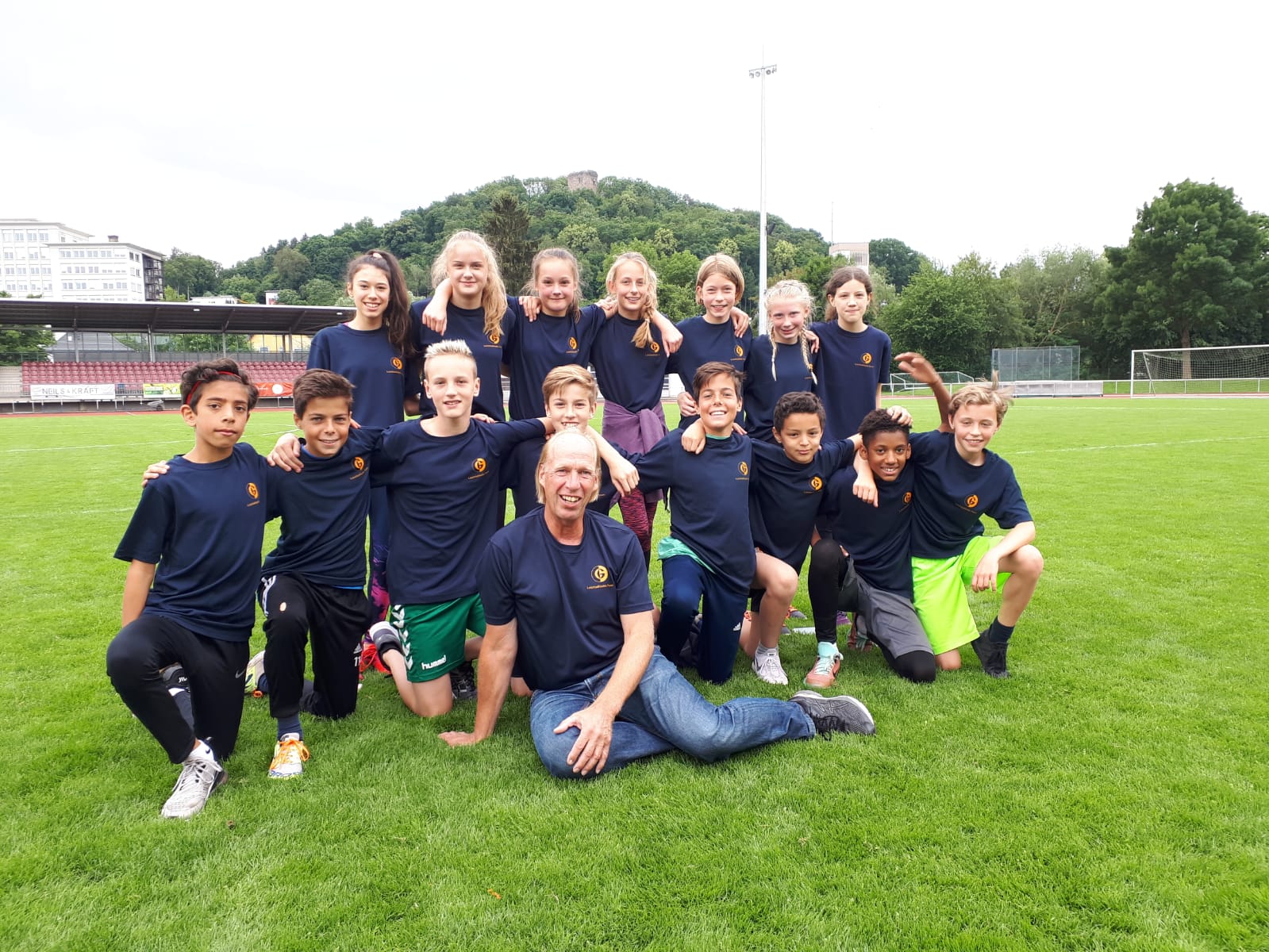 Wie in jedem Jahr nahmen auch diesmal wieder viele Gutenbergler am Frankfurt-Marathon am letzten Oktober-Sonntag teil. Die Vorbereitung lag in den Händen des Lehrer-Trainers Diedrich Meyn, der dabei wieder vom Elternvertreter Klaus Doesseler unterstützt wurde. Die Abläufe mit Anreise vom Wiesbadener Hauptbahnhof aus, Eintreffen auf dem Platz hinter der Festhalle, Vorbereitungen auf den Lauf und dem Start an der Ludwig-Erhard-Anlage sind mittlerweile so eingeübt und routiniert, dass Lehrer, Eltern und Kinder sich in aller Ruhe auf ihren Start vorbereiten konnten und den Lauf durch Frankfurts Straßen einfach nur genießen konnten. Vorbei ging es dann an Tausenden von Zuschauern entlang der Strecke, an der auch Musikgruppen zu der guten Stimmung beitrugen. Der Höhepunkt war dann wie immer der Zieleinlauf in die Frankfurter Festhalle über den roten Teppich, der bei Musik, Moderation und Lichteffekten zu einem ganz besonderen Erlebnis wurde. Hinter dem Ziel wurden alle Läufer mit einer aufwendig gestalteten, massiven Medaille ausgezeichnet, welche das Bild zeigt.