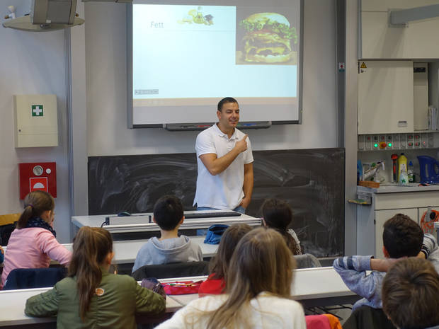 „Die Menge macht das Gift!“, diese Worte prägten den Vortrag von Martin Syskowski, Physiotherapeut und Fitnesstrainer sowie Gesundheitsexperte der IKK Südwest. Was genau dahinter steckt, erfuhr eine 5. Klasse der Gutenbergschule im März 2017 in einem 90-minütigen Vortrag über gesunde Ernährung, der vom 05er Klassenzimmer organisiert wurde.