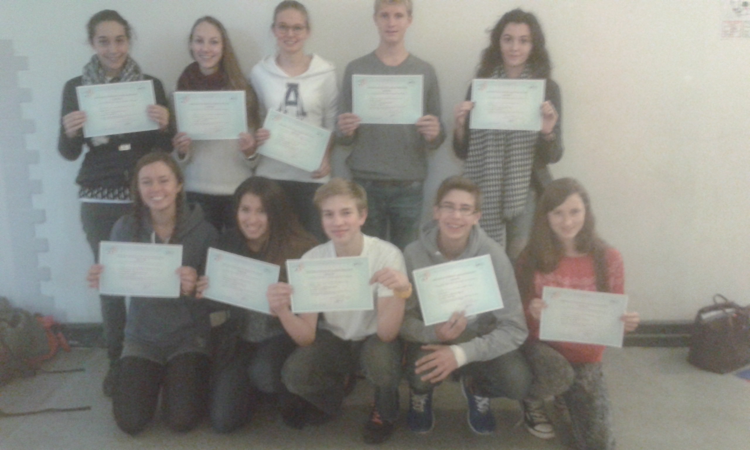 Die Mühe hat sich mal wieder gelohnt! Nachdem elf Schülerinnen und Schüler der damaligen Stufen 9, E und Q2 zwei Monate lang intensiv durch die Fremdsprachenassistentin Roxane Ghiorghiou vorbereitet worden waren, stellten sie sich im Frühjahr 2015 einer schriftlichen und einer mündlichen Prüfung. Erstere bestand aus Aufgaben zum Hörverstehen, zum Leseverstehen und aus einem selbst zu verfassenden Text. Dieser Teil der Prüfung wurde unter der Aufsicht der für Delf zuständigen Französischlehrerin Frau Kugler an einem Samstag in der Schule abgenommen. Bei der mündlichen Prüfung stellten sich die Prüflinge den Fragen von Muttersprachlern im Institut Francais in Mainz. Alle Gutenbergschülerinnen- und schüler haben diese anspruchsvolle Prüfung bestanden und durften heute ihre offiziellen Diplome in Empfang nehmen. Diese attestieren ihnen ein international anerkanntes und vergleichbares Niveau (B1 oder B2) in der französischen Sprache.