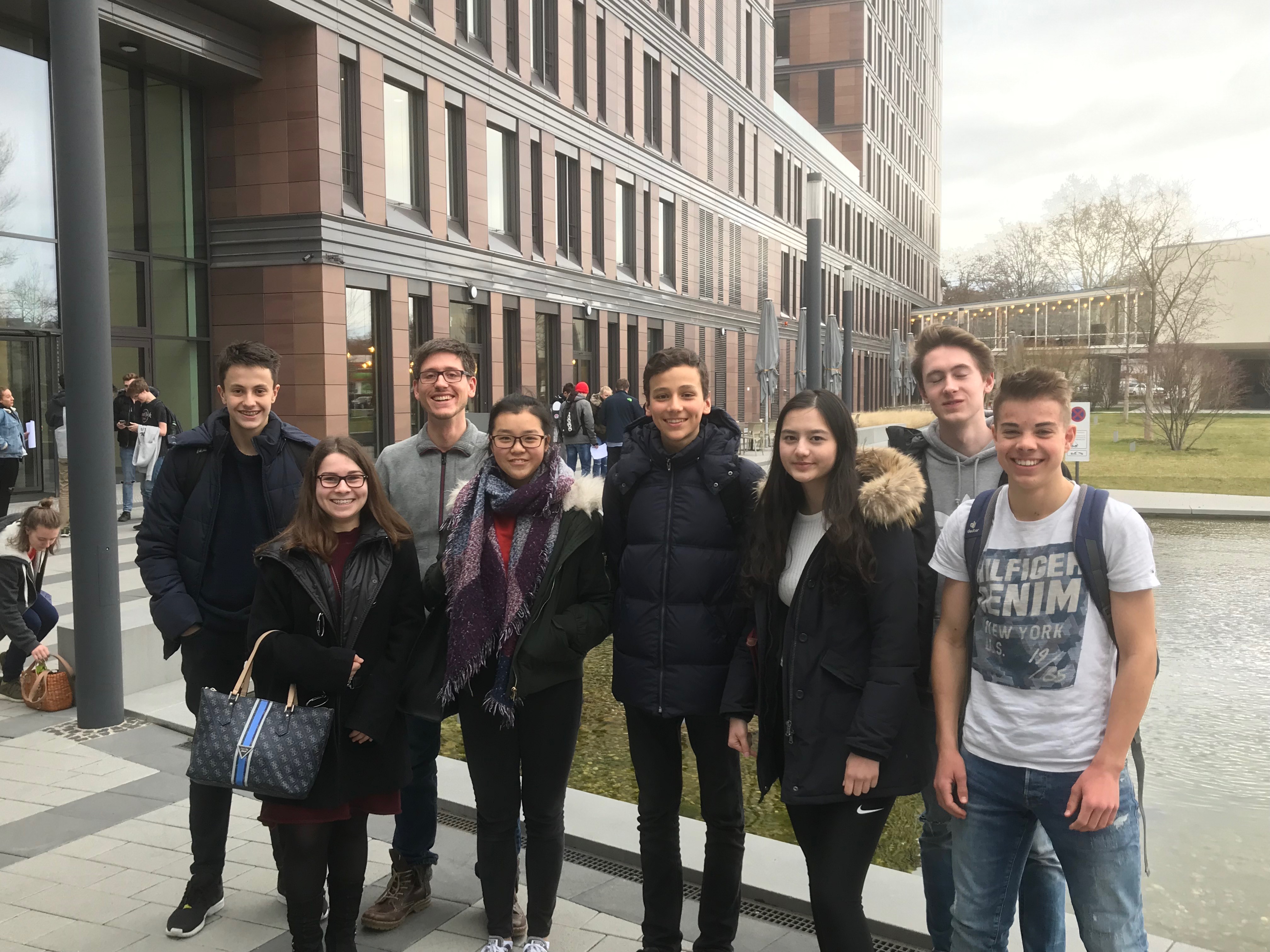 (Frankfurt, 16.03.2019) Weder von dem ausladenden Wetter noch von dem frühen Klingeln des Weckers ließen sich die Schülerinnen und Schüler an diesem Samstag abschrecken und machten sich auf den Weg zum diesjährigen Tag der Mathematik an der Frankfurt School of Finance & Management. Neben einem Einblick in Studienmöglichkeiten mit angewandter Mathematik stand dabei vor allem das mathematische Kräftemessen in Form verschiedener Wettbewerbe mit mathematischen Hürden aus verschiedenen Themenbereichen im Mittelpunkt. In ganz Hessen schickten die Schulen ihre besten Mathematiker aus der Qualifikationsphase 2 an den verschiedenen Standorten ins Rennen, für die Gutenbergschule traten in diesem Jahr Lea Chen, Julia Markhovski, Christina Matthias, Daniel Zinnkann, Markus Perle, Maximilian Stumpf und Felix Welteke an.